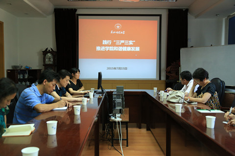 7月15日,yl9193永利集团党委书记谷国锋为全院教工党员上了题为“践行‘三严三实’,推进学院和谐健康发展”专题教育党课。