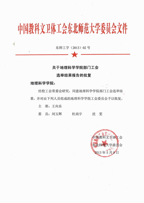 地理科学系、自然地理与资源环境系工会小组组长:李鸿凯