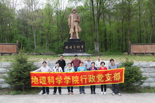 活动中,支部成员及群众代表一行11人前往吉林省桦甸市和靖宇县行政区境内的爱国主义教育基地——杨靖宇密营,参观密营展厅及杨靖宇英雄当年进行抗日战斗的饮马池、青松灶、粮仓等地;走进红石林场,进行植物地理、动物地理的科学考察。活动激发了爱国热情、民族激情和时代责任感,落实了党的十八大立足岗位“创先争优”的奉献精神,提升了参加成员的地理专业素质。