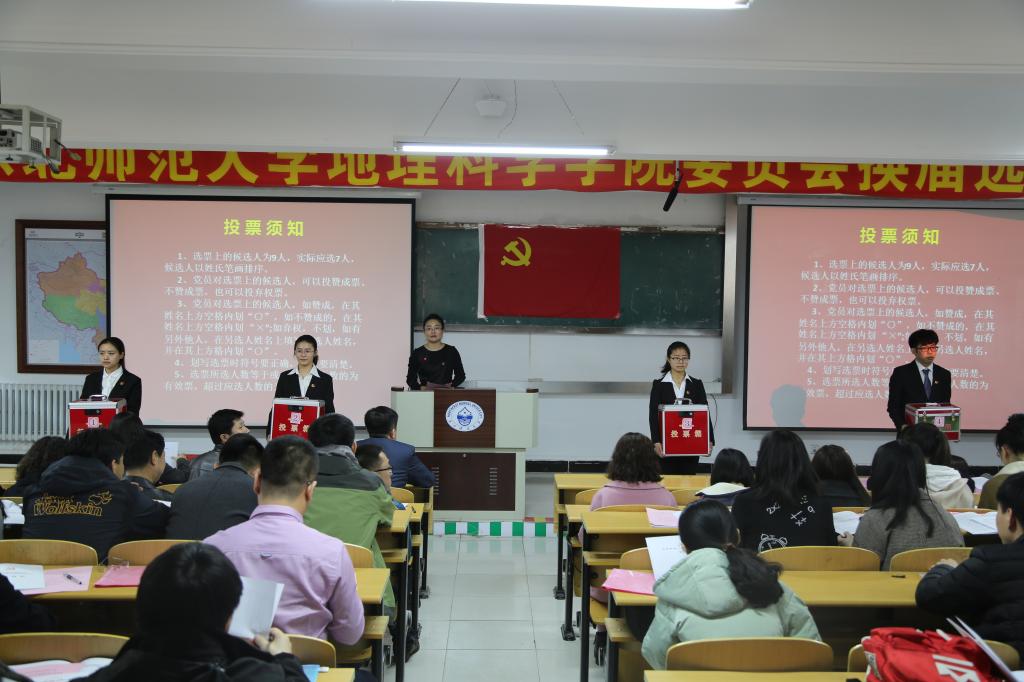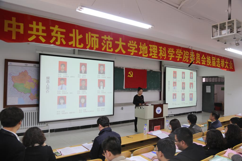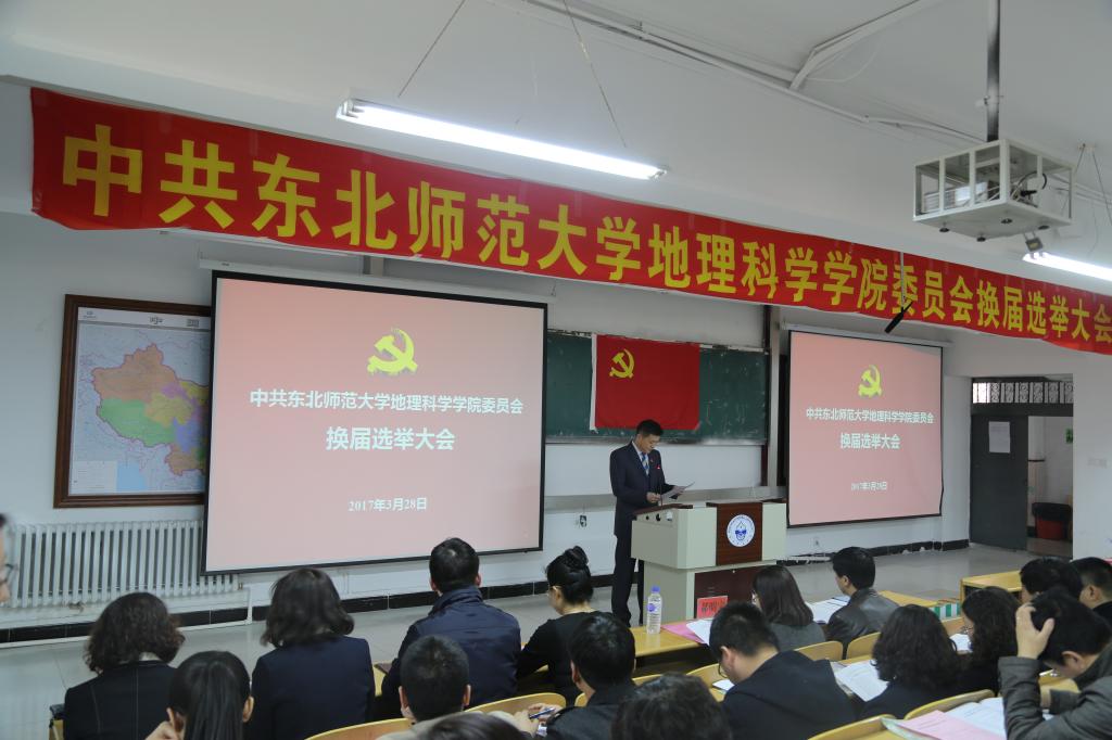 大会在庄严的国歌声中开始。党委书记谷国锋代表上一届委员会作题为《深化综合改革提升核心竞争力,为建设具有重要影响的一流地理学科而努力奋斗》的工作报告,总结了过去三年党委的工作,并对新一届党委提出殷切希望。选举大会由总监票人娄晓黎主持。陈静代表当选委员在大会最后表示,在今后的工作中会紧跟学校党委步伐,努力提高工作科学化水平,与全院师生共同努力,为建设具有重要影响的一流地理学科而努力奋斗。