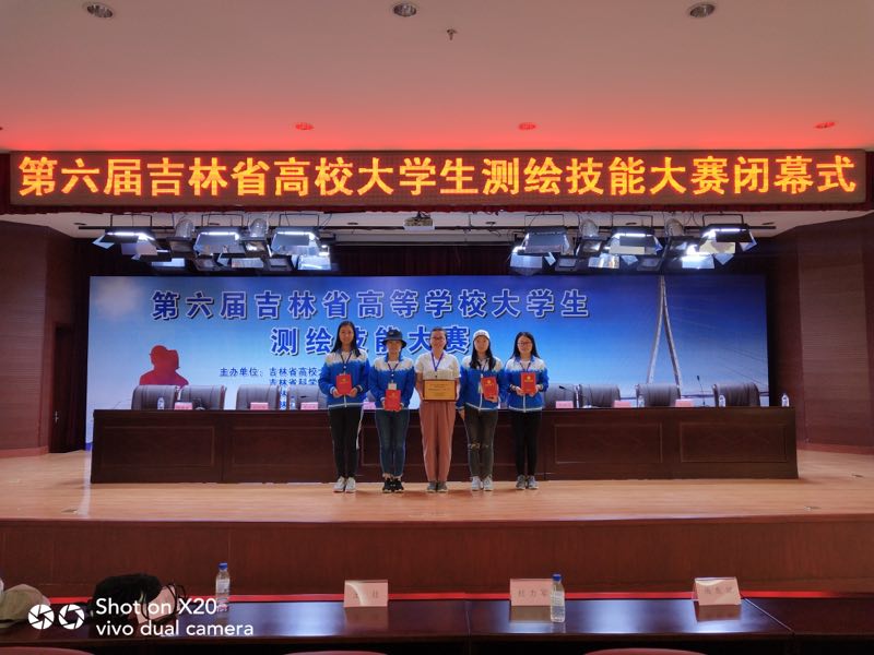 6月23日-24日,由我院韩阳老师指导的2015级地理信息科学专业本科生贾明瑞、李寒、彭直琰、代天天四位同学在第六届吉林省高等学校大学生测绘技能大赛取得非专业组图根导线测量二等奖,我院获得优秀组织奖。