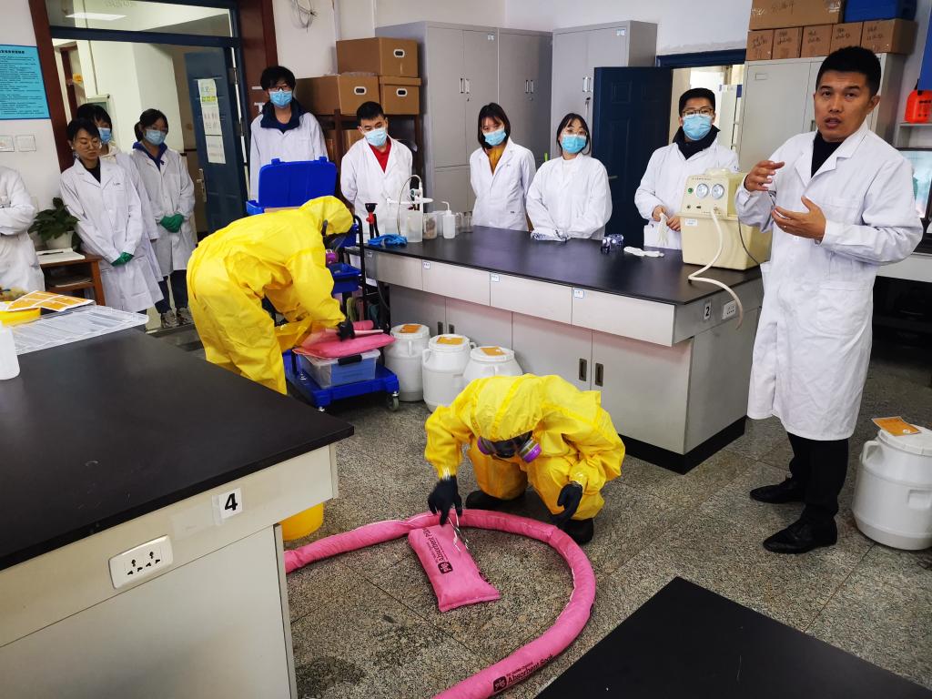 11月4日,由学校资产与实验室管理处主办、yl9193永利集团协办的实验室危险化学品泄漏应急演练于地理楼110常规实验室举行。yl9193永利集团近20名师生参加了本次演练活动。