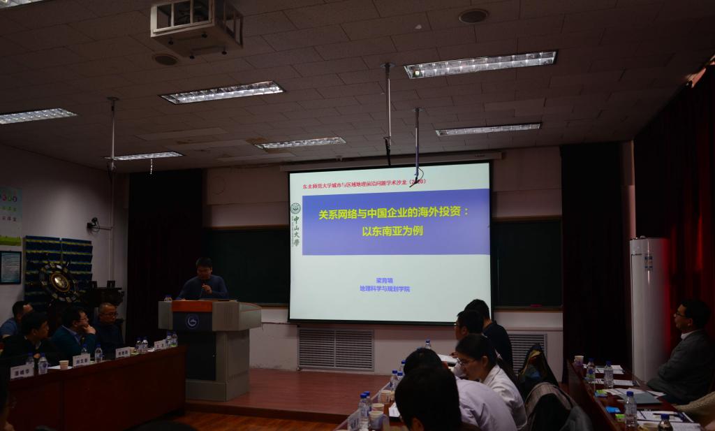 中山大学地理科学与规划学院梁育填教授作了题为《关联网络与中国企业的海外投资:以东南亚为例》的报告,报告从企业嵌入社会关系网络的角度切入,以中国企业投资东南亚国家为例,分析了中国企业在海外投资中的社会网络嵌入过程和机制,并对关系网络的经济地理学研究机制和尺度进行了探索和思考。
