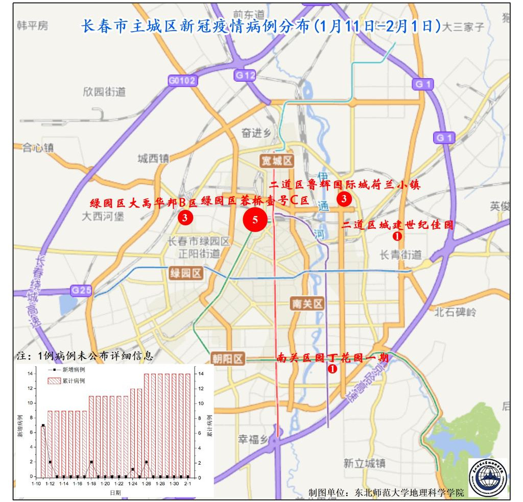 图3. 长春市主城区新冠疫情病例分布(1月11日-2月1日)