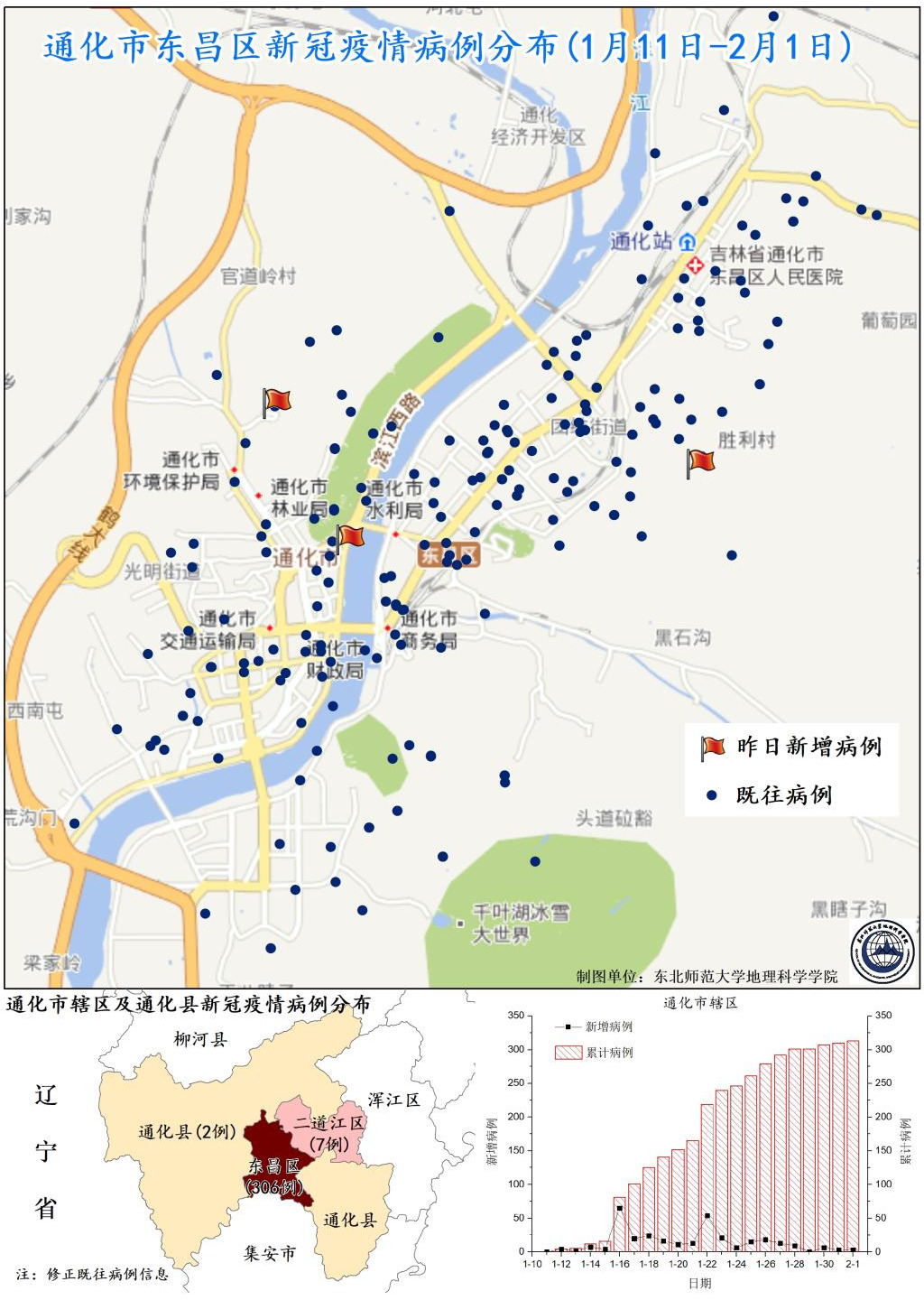 图4. 通化市新冠疫情病例分布(1月11日-2月1日)