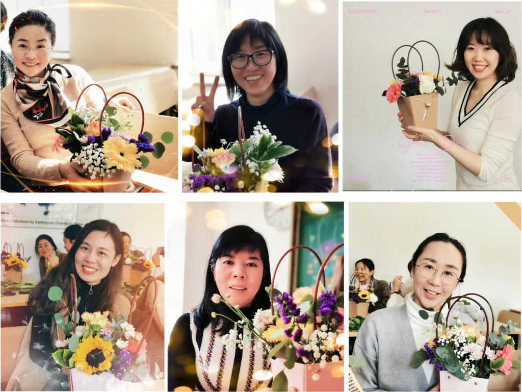 活动中,学院邀请花艺师讲授花艺知识,通过艺术构思、适当剪裁及合理摆插,表现花材的活力与自然美。女教职工借用花木来抒发高雅情怀,以花感人,以花育人,笑脸与鲜花共美,笑声与温暖同在。此次插花活动为我院女教工提供了一个欣赏美、创超美、分享美的平台,充分展现了女教工的优雅魅力和青春风采,同时使女教工在忙碌的工作中放松心情、共度美好节日!