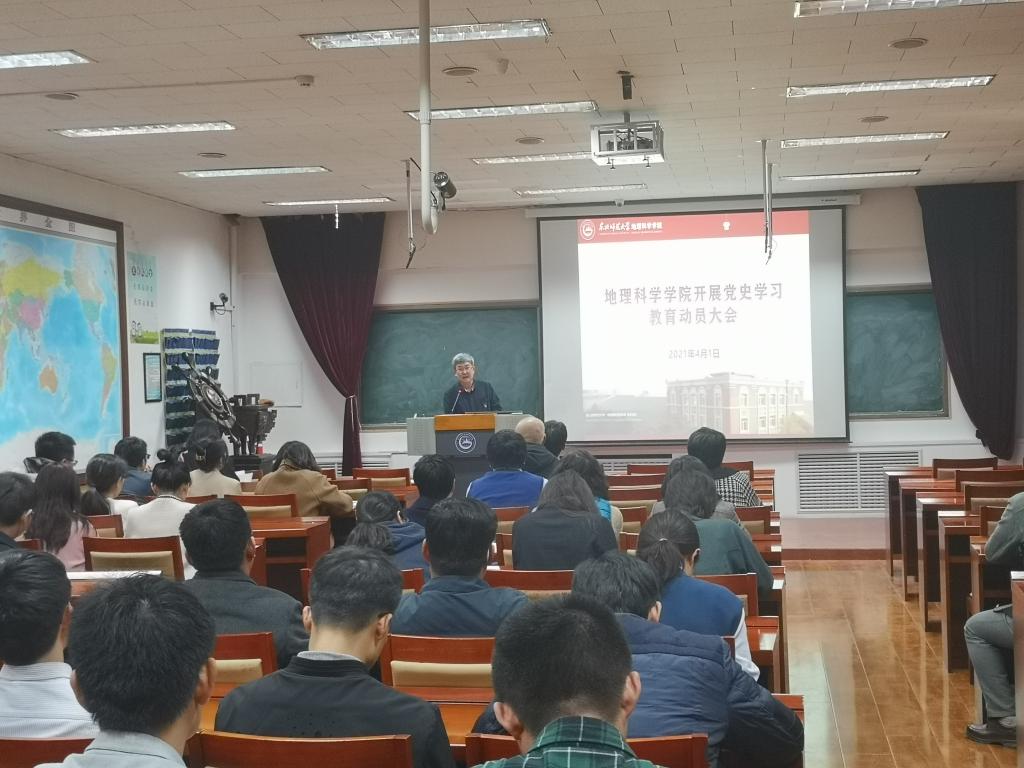 为深入学习习近平总书记在全国党史学习教育动员大会上的讲话精神,贯彻落实教育部党组和学校党委关于开展党史学习教育的各项工作部署,4月1日,地理科学学院召开党史学习教育动员大会。学院党政班子成员、全体教职工党员和学生党员代表参加了此次会议。