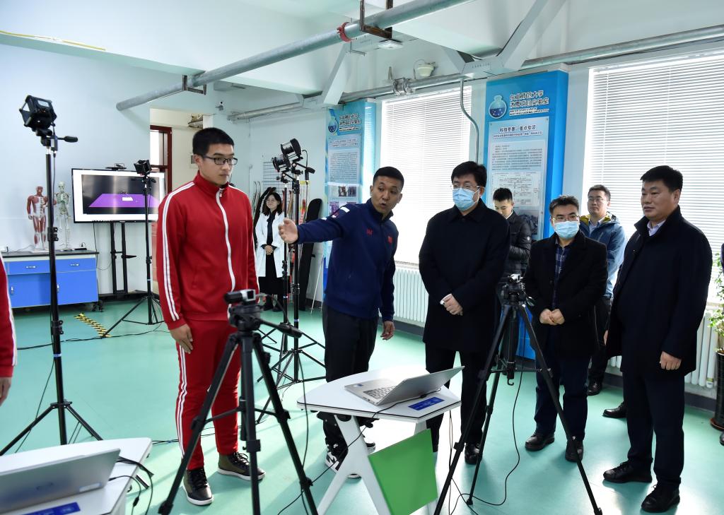 调研中,阿东一行还参观了我校冰雪运动重点实验室、图书馆丛碧轩、长白山地理过程与生态安全教育部重点实验室。在冰雪运动重点实验室,张守伟对我校“冰雪+”人才培养模式、训练科学化等进行了介绍。阿东询问了相关设备的使用及研发情况并对我校“五行通背拳”的表演鼓掌称赞;在图书馆丛碧轩,特藏部工作人员王文佳详细地解说了馆藏的古籍书画,阿东不时驻足观赏并点头称赞;在长白山地理过程与生态安全教育部重点实验室,白娥从学科方向、科研成果、人才引进等方面进行了介绍,阿东勉励科研人员要再接再厉,落实创新驱动发展战略,为新时代长春市科技事业振兴助力。