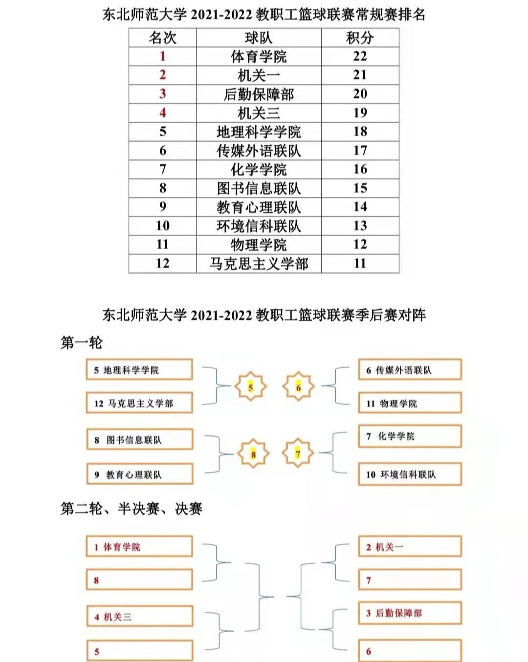 经过近3个月的赛程,2021-2022年永利官网教职工篮球比赛常规赛阶段全部结束,yl9193永利集团篮球代表队经过11场比赛的激烈角逐,取得全校第五名,位列全校12支参赛中的学院队伍之榜首,是近十年参加比赛获得的最好成绩。