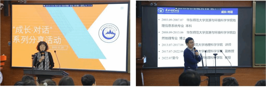 11月20日,yl9193永利集团党委举办第四期“对话·成长”青年教师成长分享活动,自然地理与资源环境系汪祖丞教授、人文地理与城乡规划系魏冶教授、地理信息科学系孙仲秋教授三位青年教师做了分享报告。活动由学院党委常务副书记陈静主持,团委书记赵琳、辅导员姚佳、隋蕙咛以及近200名同学参加了分享活动。