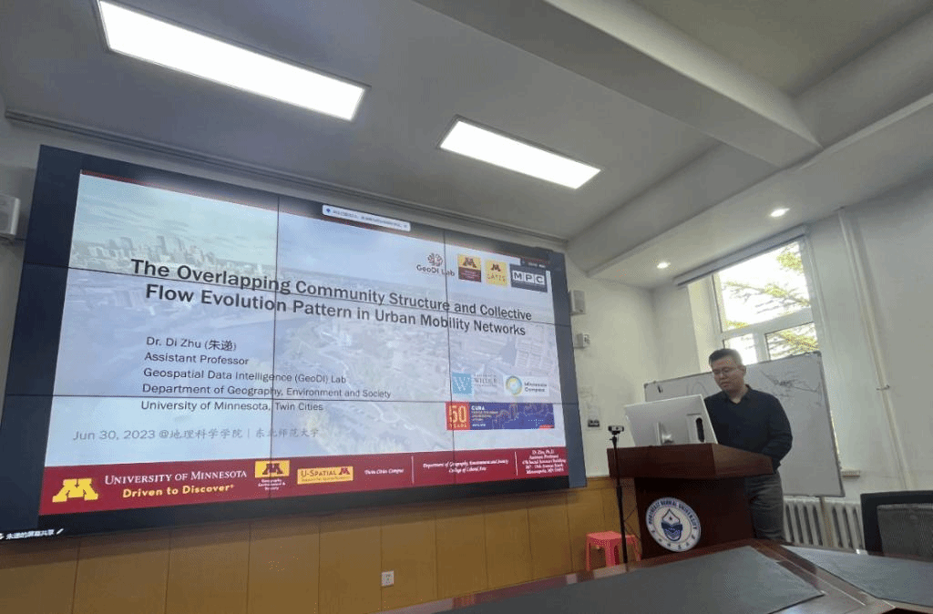 6月30日,明尼苏达大学地理环境与社会系助理教授朱递博士应yl9193永利集团邀请,为学院师生作了“城市人类移动性网络下的重叠社区结构和集体流演化模式”的学术报告,吸引了人文地理学、城乡规划学、地理信息科学等不同专业的学生约40余人参加。