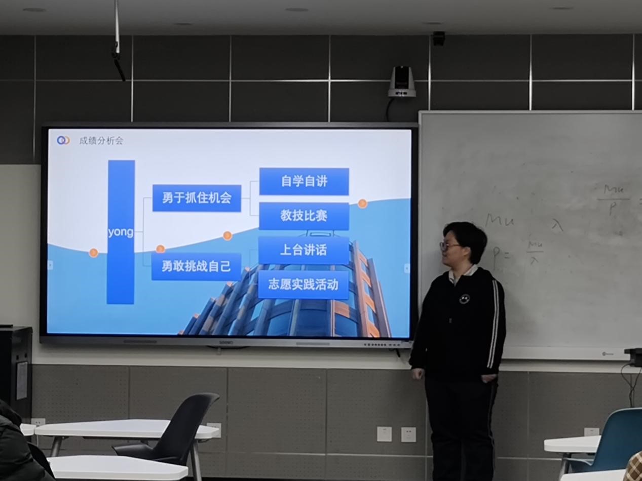 会议召开前,辅导员张婧宁老师组织同学撰写“我的人生蓝图”,分别聚焦就业和升学等维度,帮助同学们进一步明晰大学规划,有针对性的为同学们提供帮助和支持。在各班会议中,首先学习委员通过图表的形式分析大二学年班级平均绩点、个人进退步名次、寝室绩点排名、挂科人数等情况,在对比中让同学们对自身学业情况重新审视,促使总结反思。接着是学习经验分享环节,地理科学(公费师范)1班邀请到2020级刘宛昕学姐在线上为同学们的专业课学习和中学地理课程学习提出建议;地理科学3班邀请到2020级李成奥学长为同学们分享保研经验;其他班级则通过班级内优秀学生和成绩进步明显学生的分享,让同学们拓宽思路,从身边小事开始勇敢求变,逐步实现自己的学习目标。最后是总结与展望环节,各班学习委员根据班级自身特点提出未来规划,为同学们蓄力再出发增添了信心。
