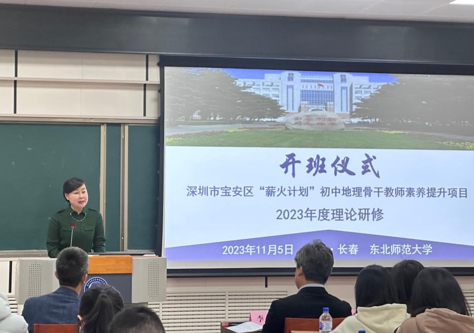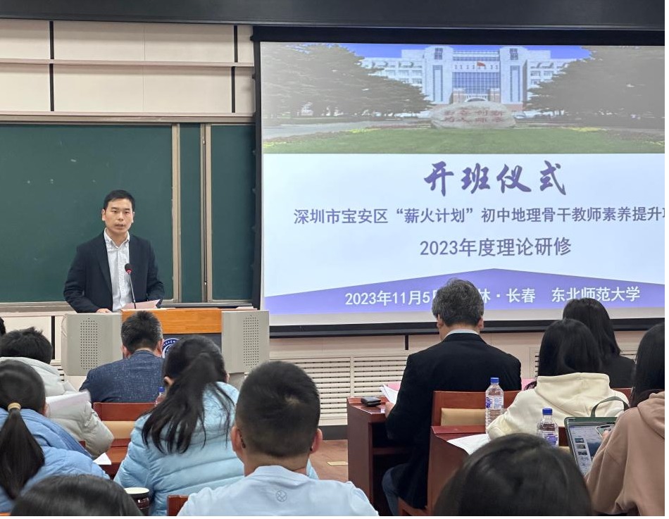 近日,深圳市宝安区“薪火计划”初中地理骨干教师素养提升项目2023年度理论研修活动在我院举行。我院院长白娥教授,永利官网教师教育研究院执行院长李广教授,教务处副处长(主持工作)、教师教育研究院副院长王向东教授,我院地理教育系主任娄晓黎副教授,硕士生导师丁继昭老师,宝安区教育科学研究院教师发展部副主任康玉辉校长,教师发展部卢秋莲老师、严怡婷老师、初中地理兼研学旅行教研员邹金伟老师,“薪火计划”初中地理骨干教师,以及我院学科教学(地理)专业硕士研究生等,一同出席开班式。会议由我院丁继昭老师主持。