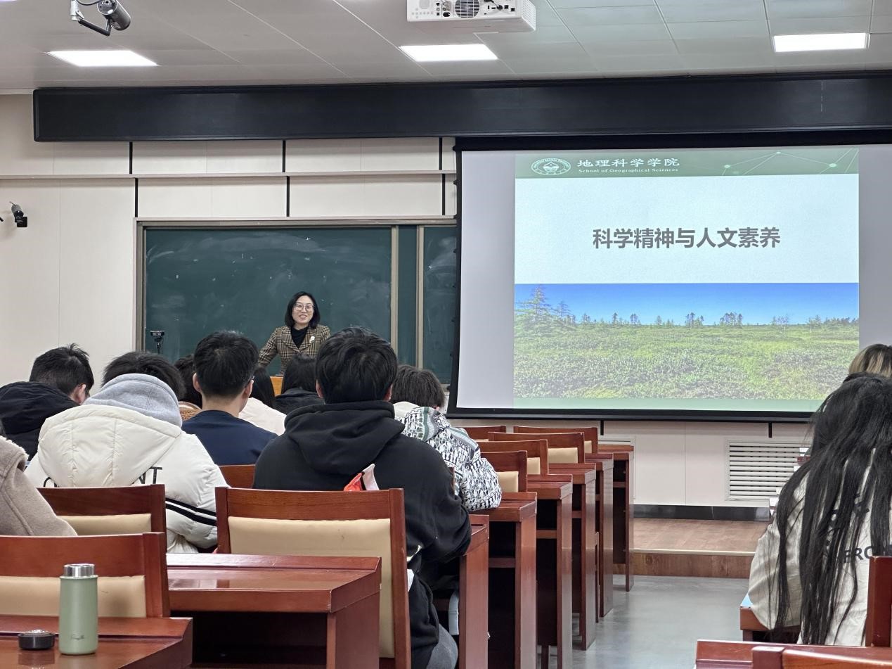其次,白娥院长着眼于地理学的系统性与综合性,指出“实施国家战略需要地理学”的重要意义,鼓励同学们要有大局观与探索欲,练就自身本领、增强求知欲,在未来的科学研究中敢提问、敢创新。最后,白娥院长在地理学学习与个人成长方面为同学们列举许多名人事迹,鼓励同学们不对未来设限,勇于闯出一番新天地。