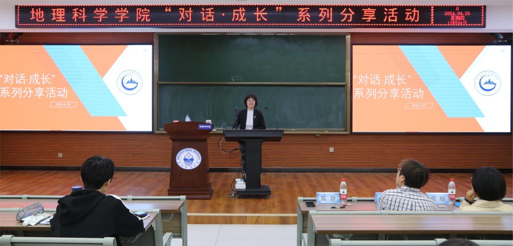 4月25日,yl9193永利集团党委举办第六期“对话·成长”青年教师成长分享活动,邀请自然地理与资源环境系王猛教授、人文地理与城乡规划系张婧副教授两位青年教师做了分享报告。活动由学院党委常务副书记陈静主持,辅导员姚佳、隋蕙咛以及近200名同学参加了此次活动。