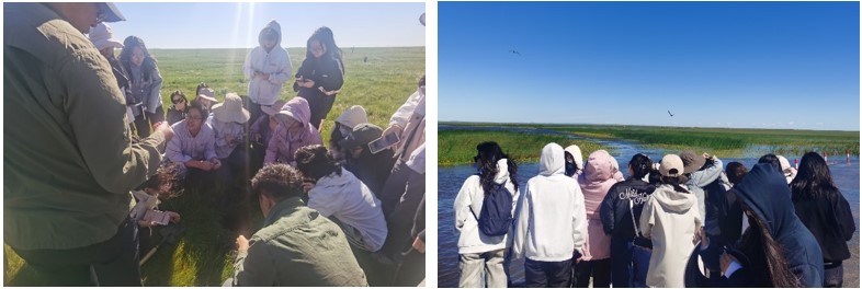 李鸿凯老师带领大家进行自主探究 同学们在呼伦湖畔观察水鸟
