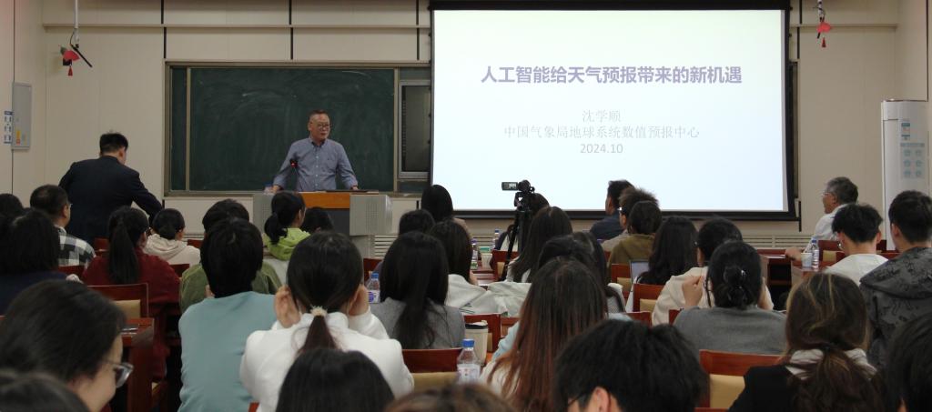 10月14日,中国工程院院士、中国气象局地球系统数值预报中心研究员、博士生导师、中国气象局首批气象杰出人才、首批国家级科技创新领军人才、全国先进工作者、国家重点领域科技创新团队负责人沈学顺教授应邀莅临我院,为广大师生带来了一场关于“人工智能给天气预报带来新机遇”的学术报告。学院党委书记卜兆君、院长白娥、吴正方教授、副院长杜海波等近百名师生参加了本次活动,活动由杜海波主持。