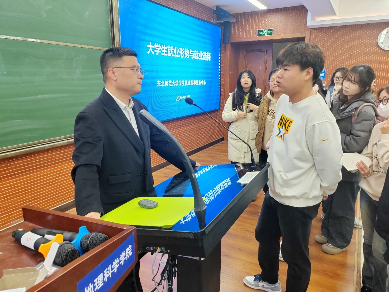 为了进一步帮助2025届毕业生了解就业形势、做好就业规划、提高就业竞争力,11月11日学院邀请学校学生就业指导服务中心副处长李健在地理大教室为本硕博毕业生开展专题讲座。学院党委副书记副院长、毕业年级本科生辅导员及2025届全体毕业生参加会议。会议由学院党委副书记副院长杨成岭主持。