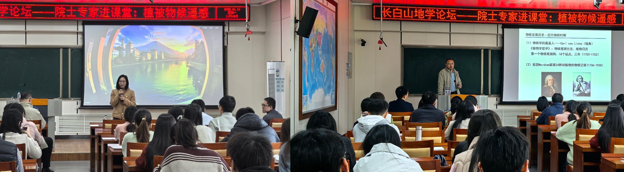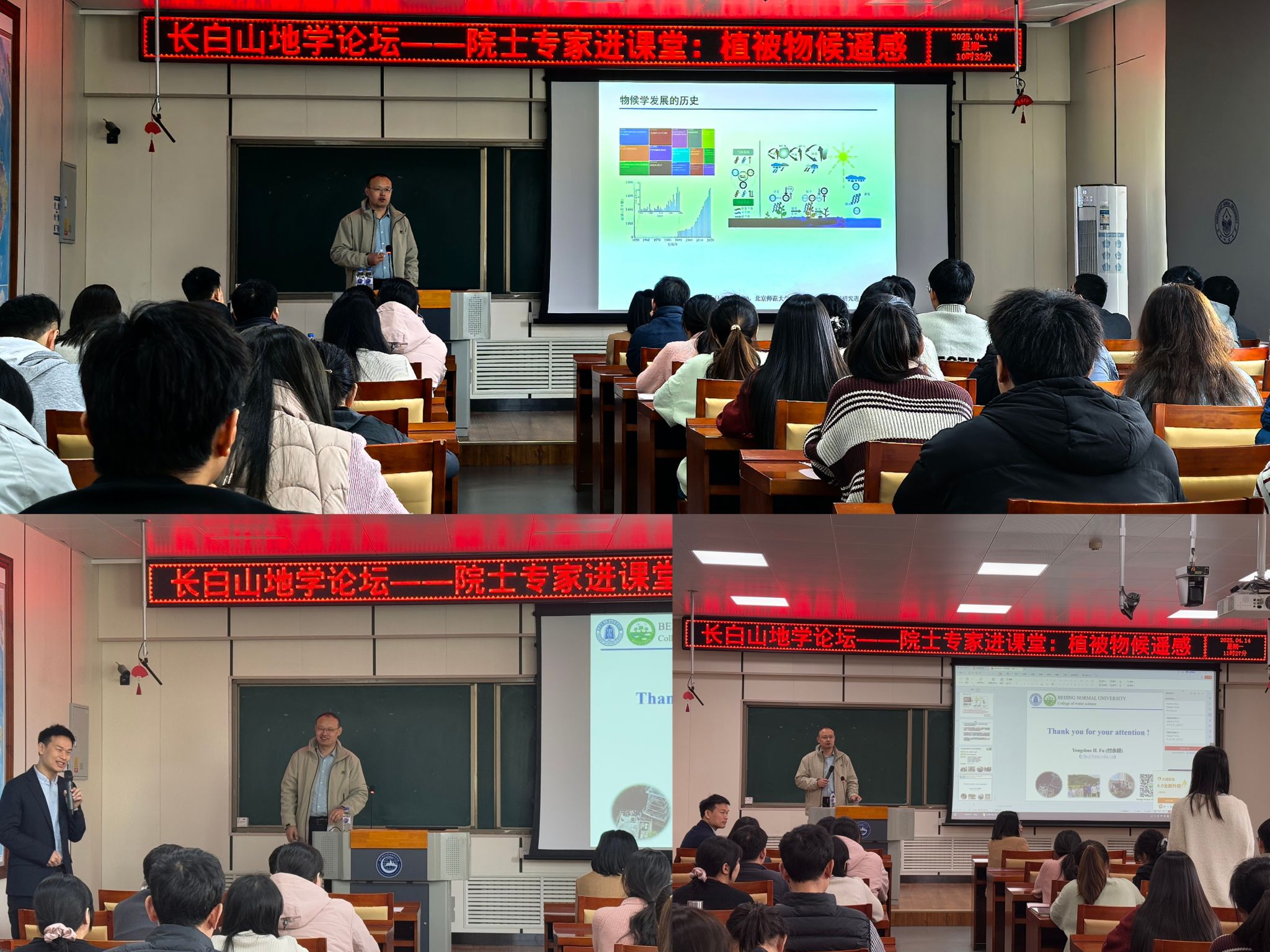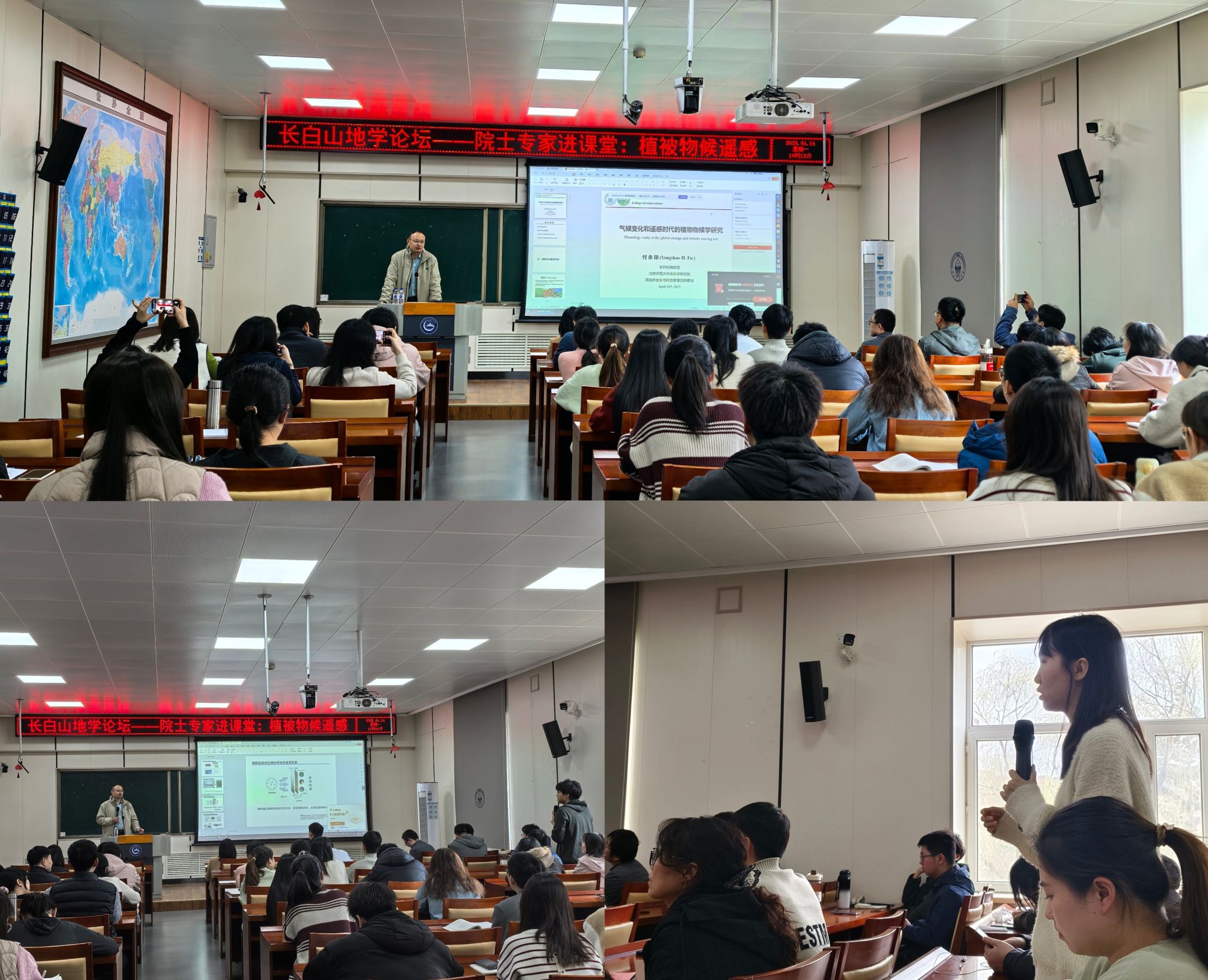 4月14日,北京师范大学水科学研究院京师特聘教授、国家级高层次领军人才、欧盟玛丽居里学者、“流域水安全与综合管理”创新引智基地主任付永硕教授应邀莅临我院,做客“长白山地学论坛”和“院士专家进课堂”活动,为师生带来题为“气候变化与遥感时代的植被物候学研究”的学术讲座。学院院长白娥教授、于子成教授、副院长杜海波教授及百余名师生参与活动,报告由杜海波主持。