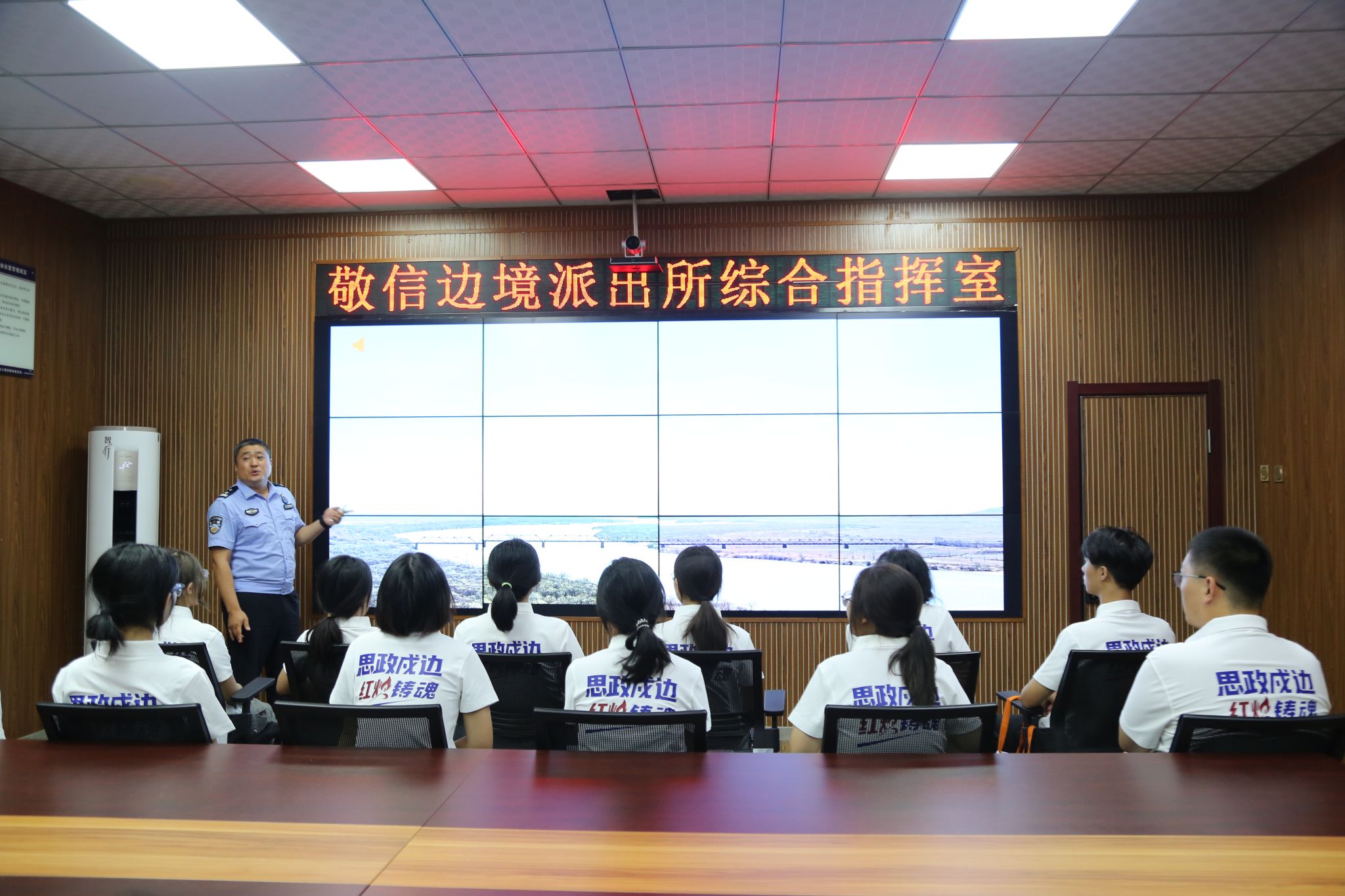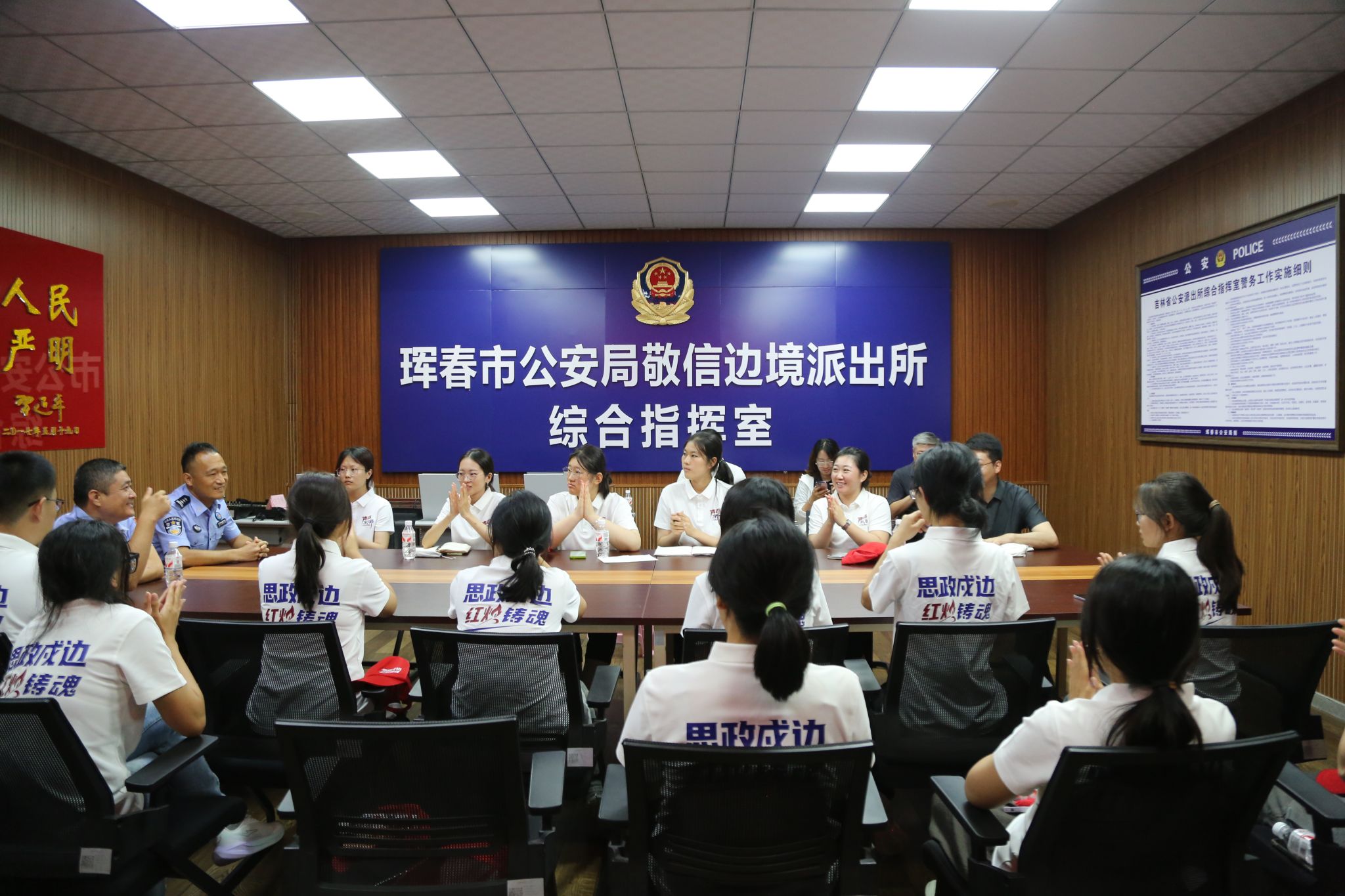 在实践研学环节,团队前往珲春市公安局敬信边境派出所开展专题学习,派出所指导员蔡辉为同学们系统讲解了边防历史与使命职责,结合土字牌和吴大澂事迹阐述了兴边固防的爱国传统。师生与派出所同志深入座谈,同学们表示,将在今后的学习与教学中传承戍边精神,培养更多有理想、有担当的时代新人。