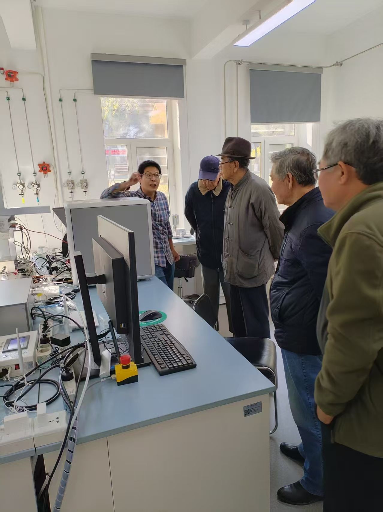 2025年11月4日上午,学院退休教师党支部吕金福、许林书、李汉鼎和冷雪天四位教师代表应邀回到学院,参观新落成的碳十四加速器质谱仪实验室。学院党委书记卜兆君同志和泥炭沼泽研究所所长王升忠同志陪同参观,实验室负责人李鸿凯同志介绍了仪器原理、操作流程和性能参数。