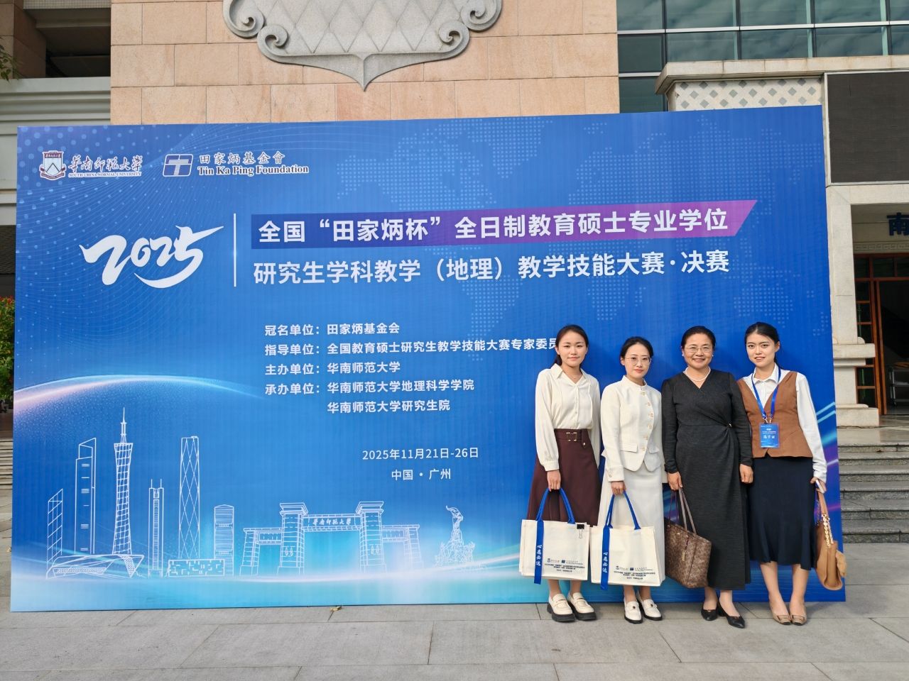 捷报传杏坛,桃李竞芳菲。11月22日,全国“田家炳杯”全日制教育硕士学科教学(地理)专业教学技能大赛决赛在华南师范大学落下帷幕。经过激烈角逐,我院学子表现优异:马宇晴(指导教师:王向东、娄晓黎)、于雯(指导教师:娄晓黎、房艳刚)荣获全国二等奖,张思雨(指导教师:娄晓黎)荣获全国三等奖,指导教师娄晓黎、王向东荣获“优秀指导教师奖”。