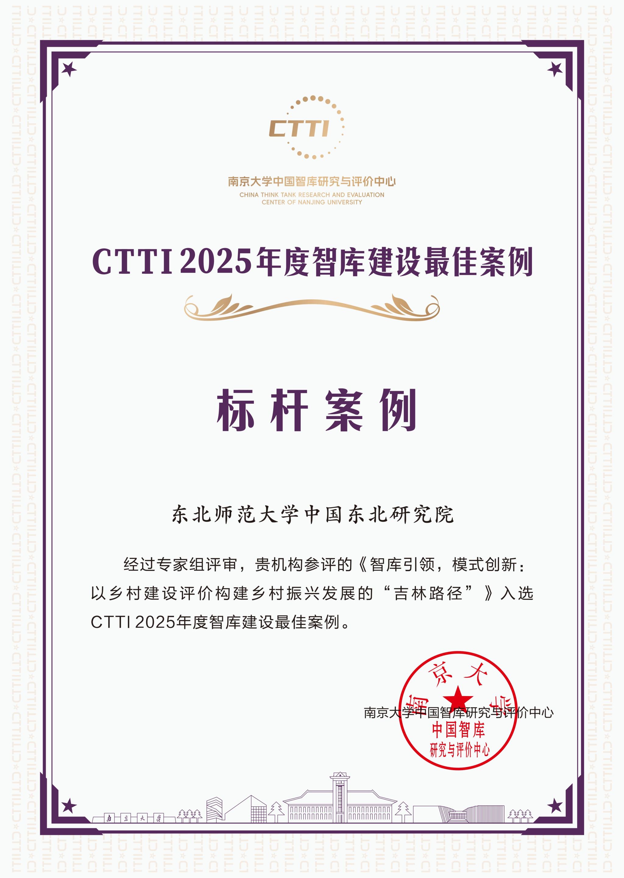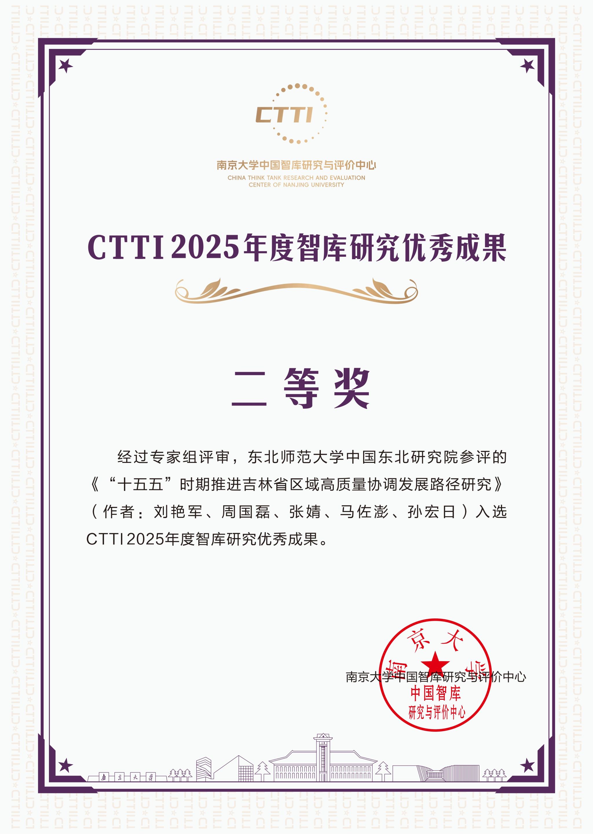 永利官网中国东北研究院始终坚持以国家需求为导向、以学术研究为根基、以服务地方为使命。此次三项成果同时获得CTTI认可,不仅体现了研究院在东北区域研究领域的深厚积累与创新能力,也反映了其在智库成果转化与社会服务方面的显著成效。