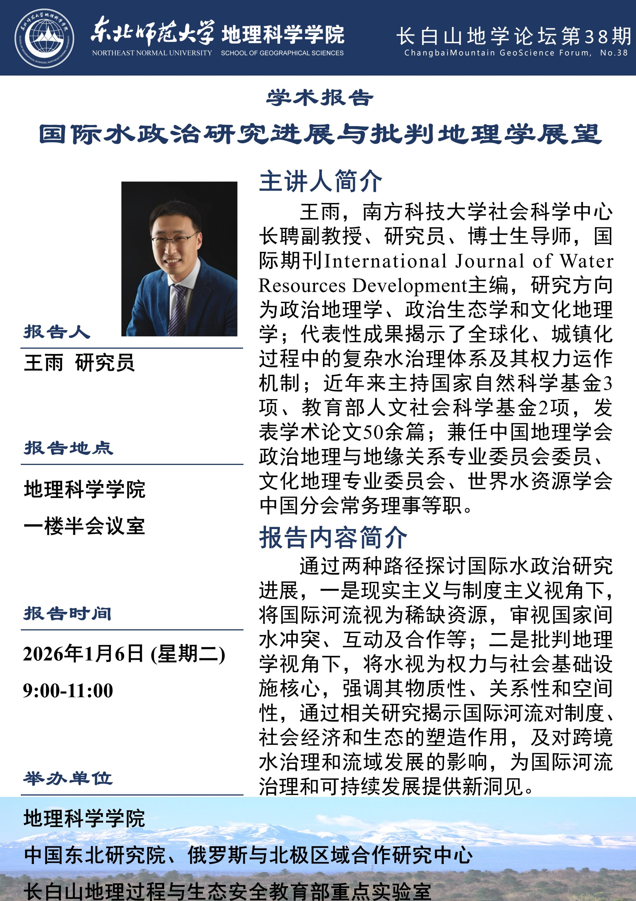 【长白山地学论坛(第三十八期)】王雨:国际水政治研究进展与批判地理学展望