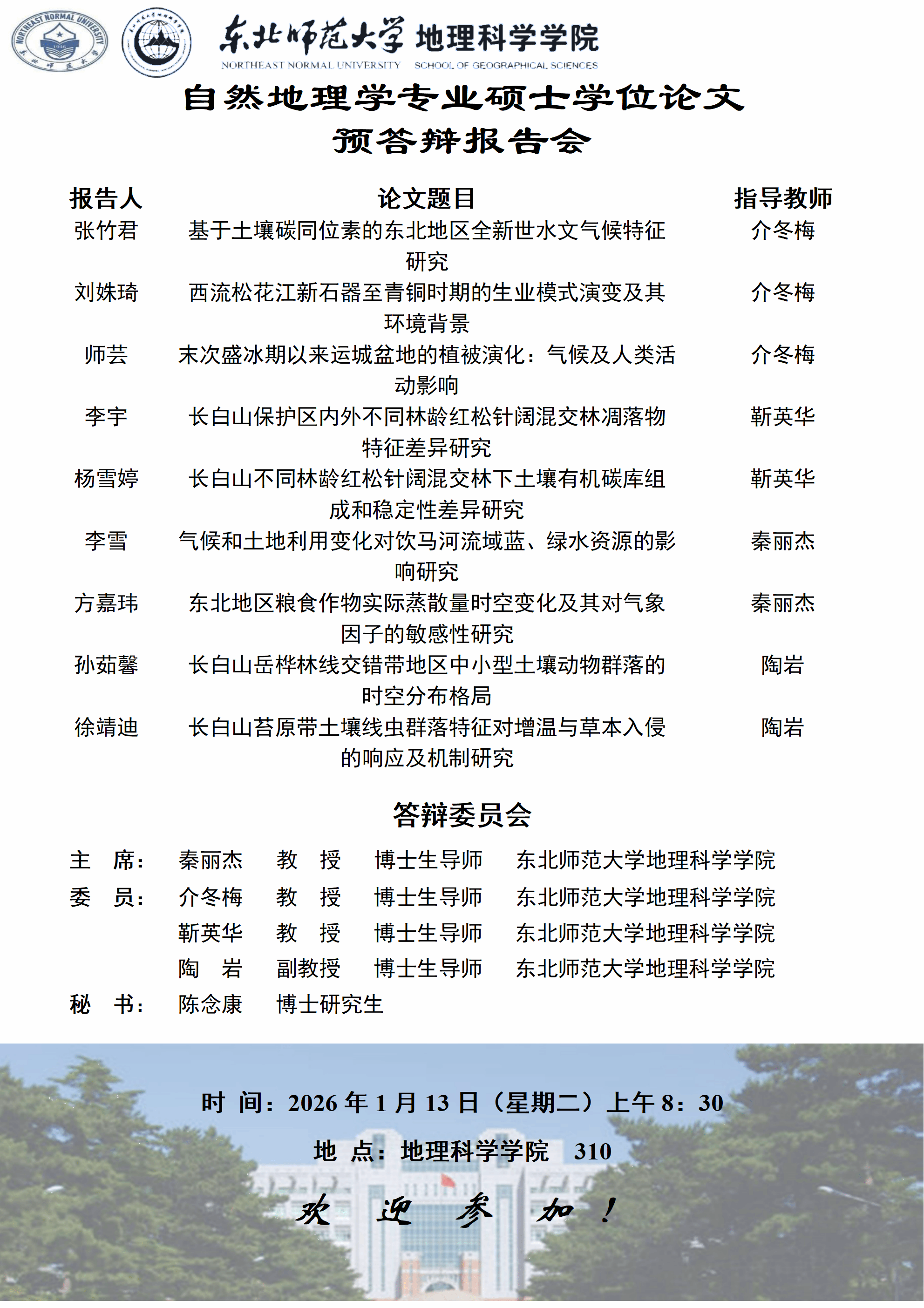 【硕博答辩】自然地理学专业硕士学位论文预答辩报告会
