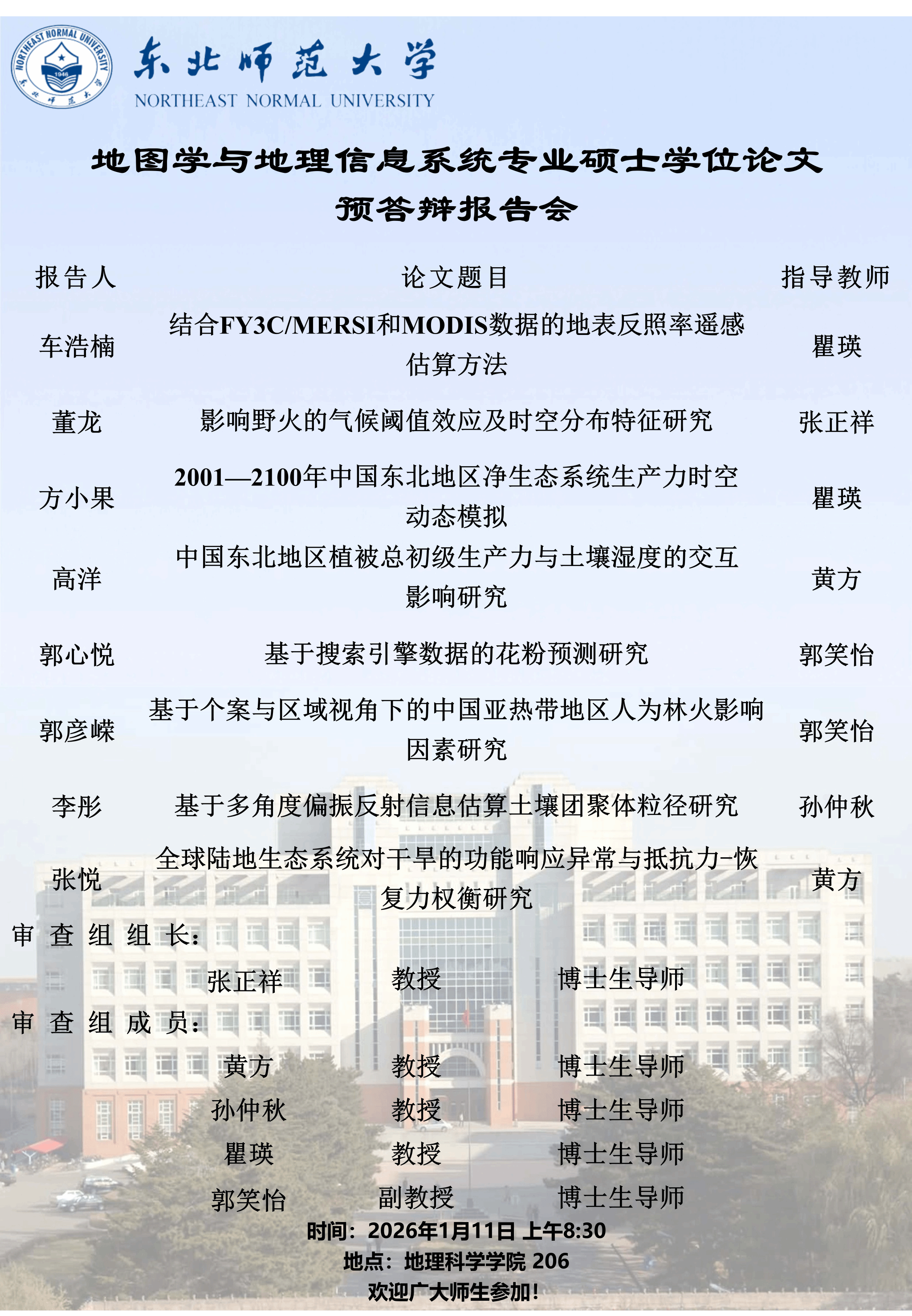 【硕博答辩】地图学与地理信息系统专业硕士学位论文预答辩报告会