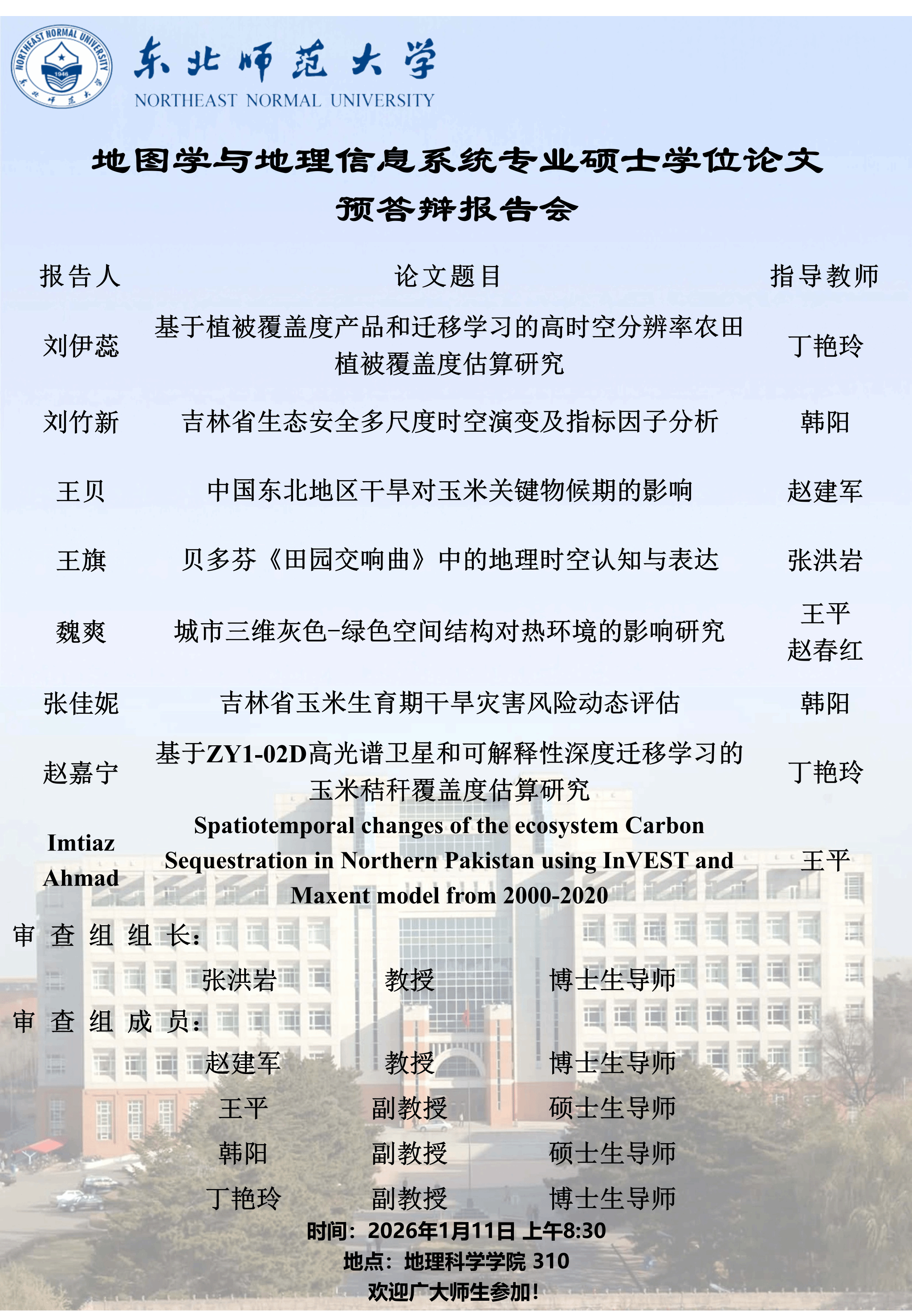 【硕博答辩】地图学与地理信息系统专业硕士学位论文预答辩报告会