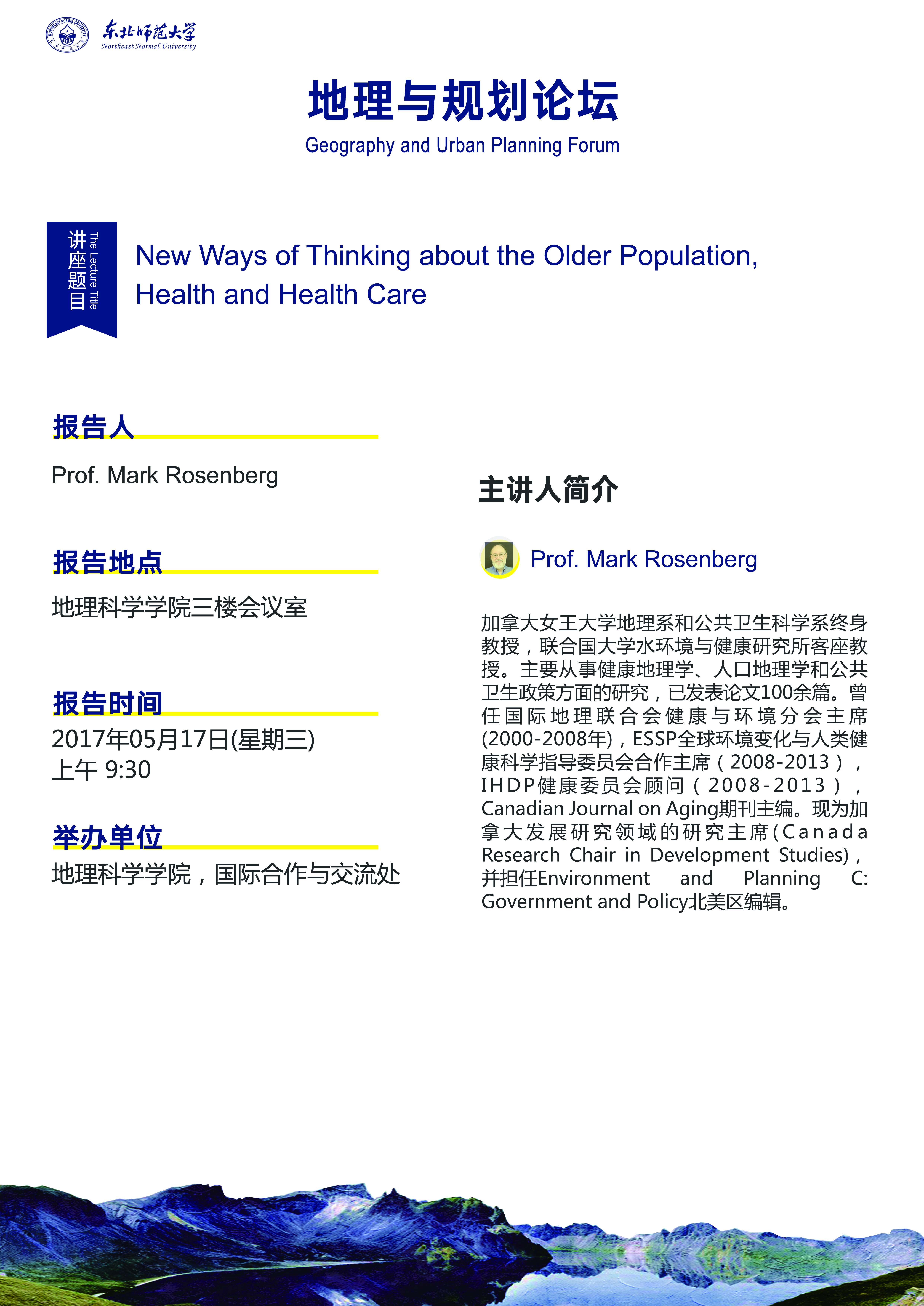 【地理与规划论坛】Prof. Mark Rosenberg:New Ways of Thinking about the Older Population, Health and Health Care