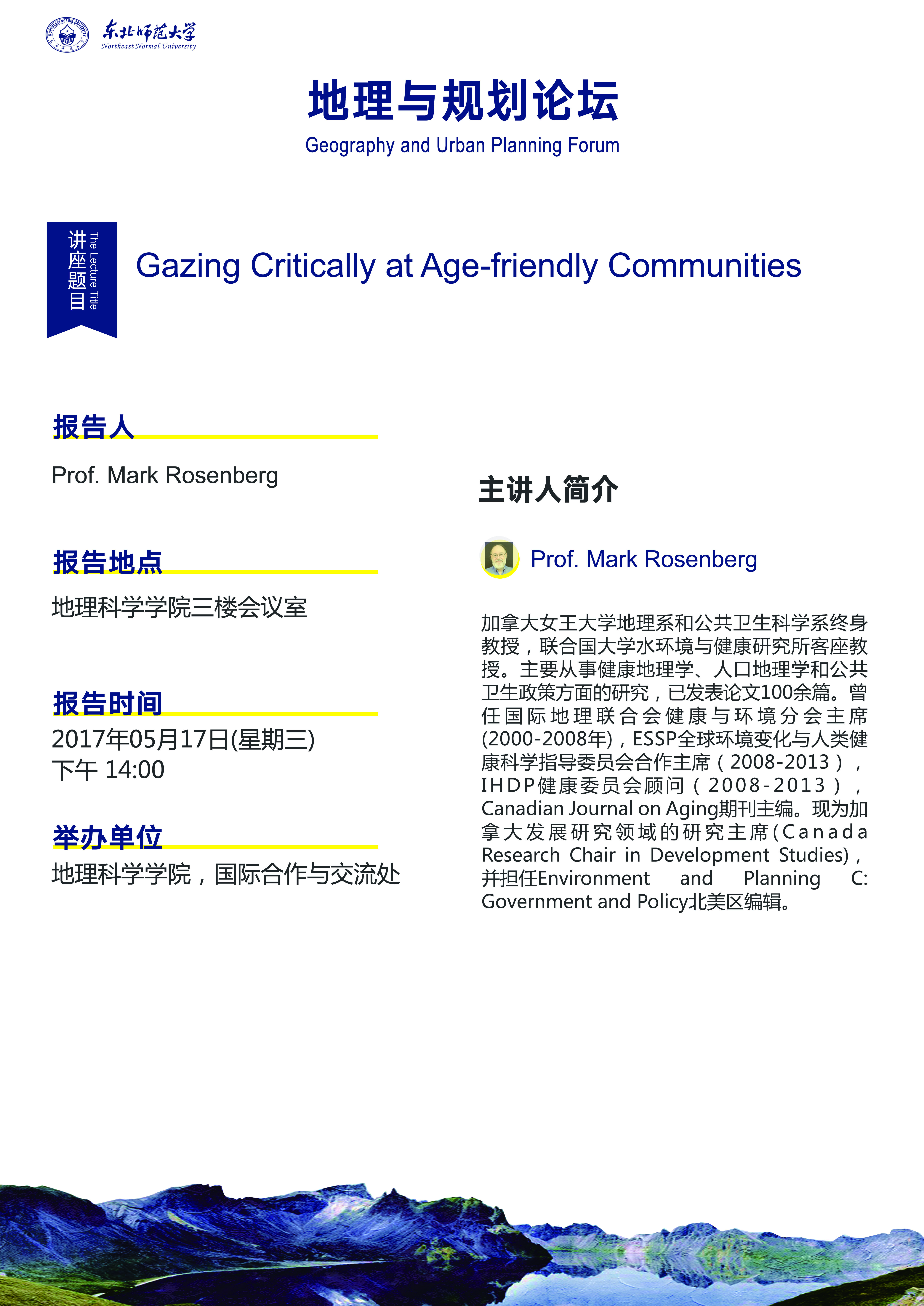 【地理与规划论坛】Prof. Mark Rosenberg:Gazing Critically at Age-friendly Communities