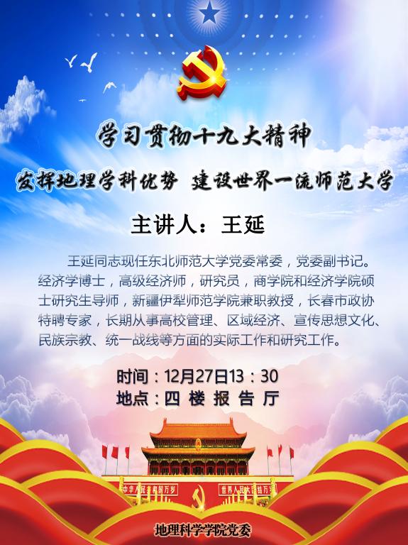 王延:学习贯彻十九大精神--发挥地理学科优势 建设世界一流师范大学