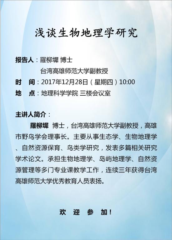 罗柳池:浅谈生物地理学研究