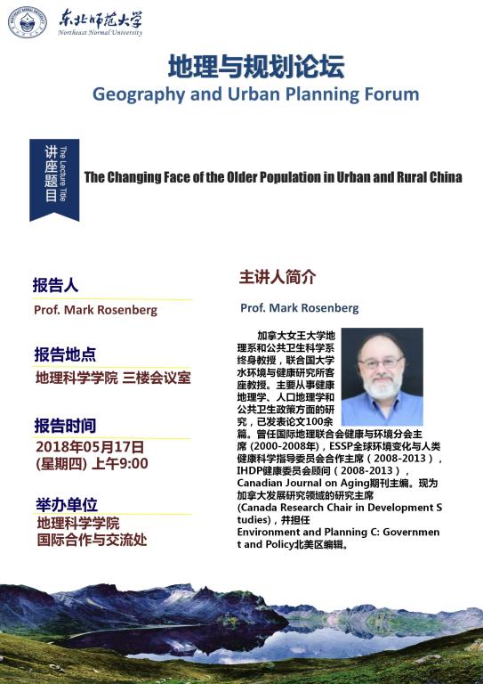 【地理与规划论坛】Mark Rosenberg:The Changing Face of the Older Population in Urban and Rural China