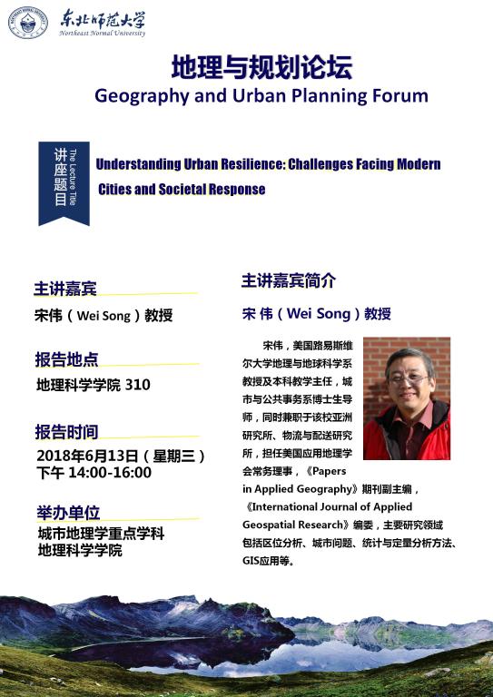 【地理与规划论坛】宋伟:Understanding Urban Resilience: Challenges Facing Modern Cities and Social Response