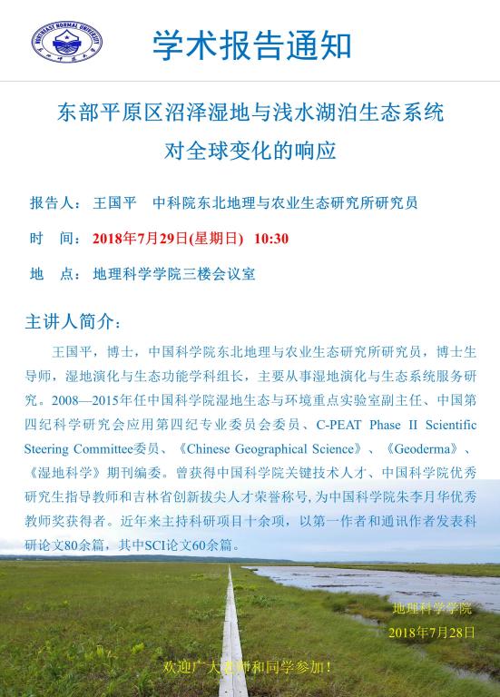 王国平:东部平原区沼泽湿地与浅水湖泊生态系统对全球变化的响应
