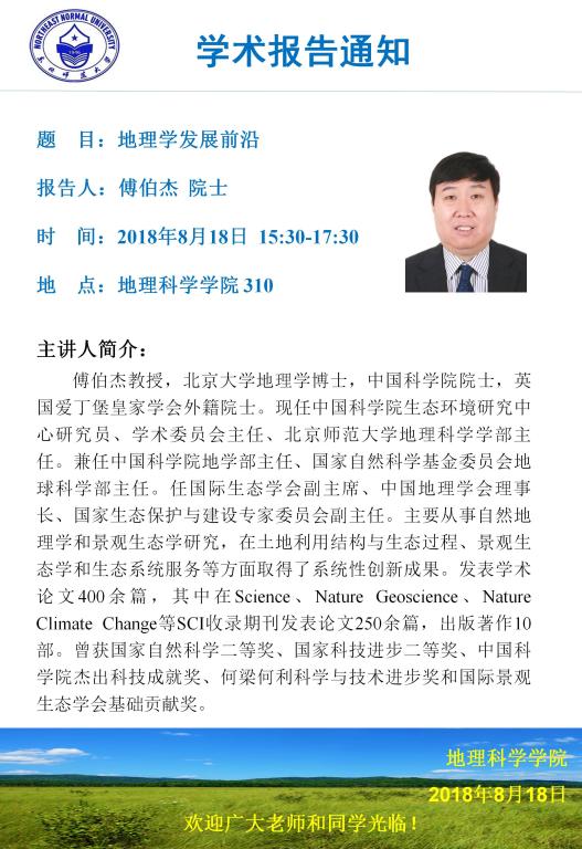 傅伯杰:地理学发展前沿