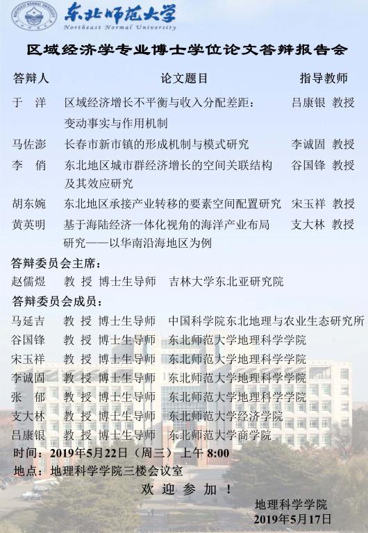 区域经济学专业博士学位论文答辩报告会