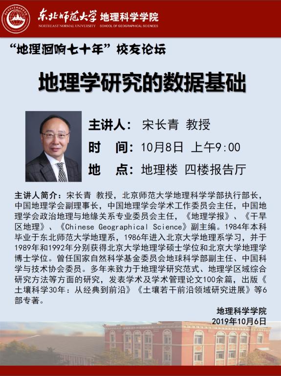 【“地理洄响七十年”校友论坛】宋长青:地理学研究的数据基础