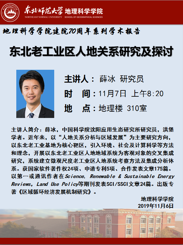 【yl9193永利集团建院70周年系列学术报告】薛冰:东北老工业区人地关系研究及探讨