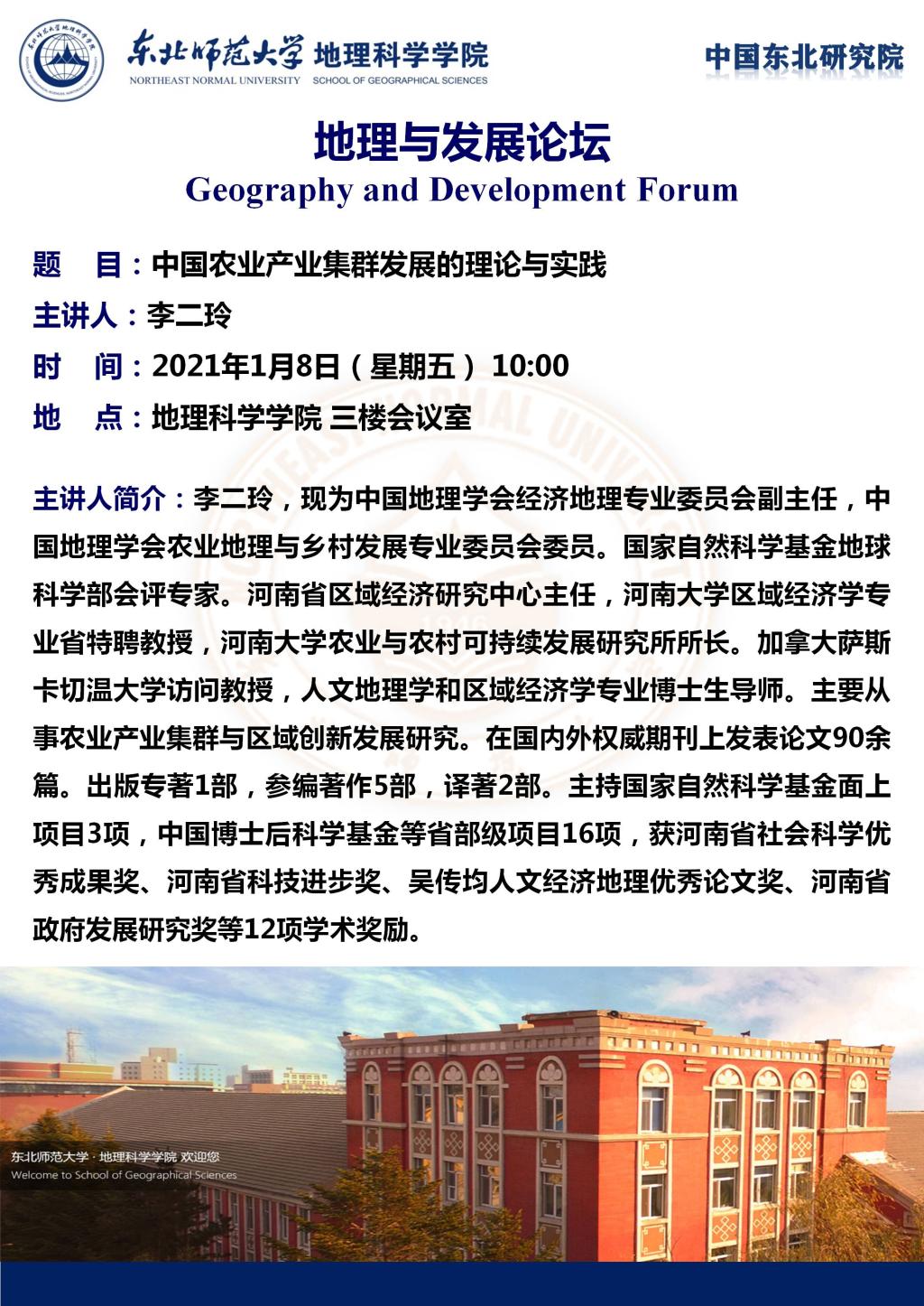【地理与发展论坛】李二玲:中国农业产业集群发展的理论与实践