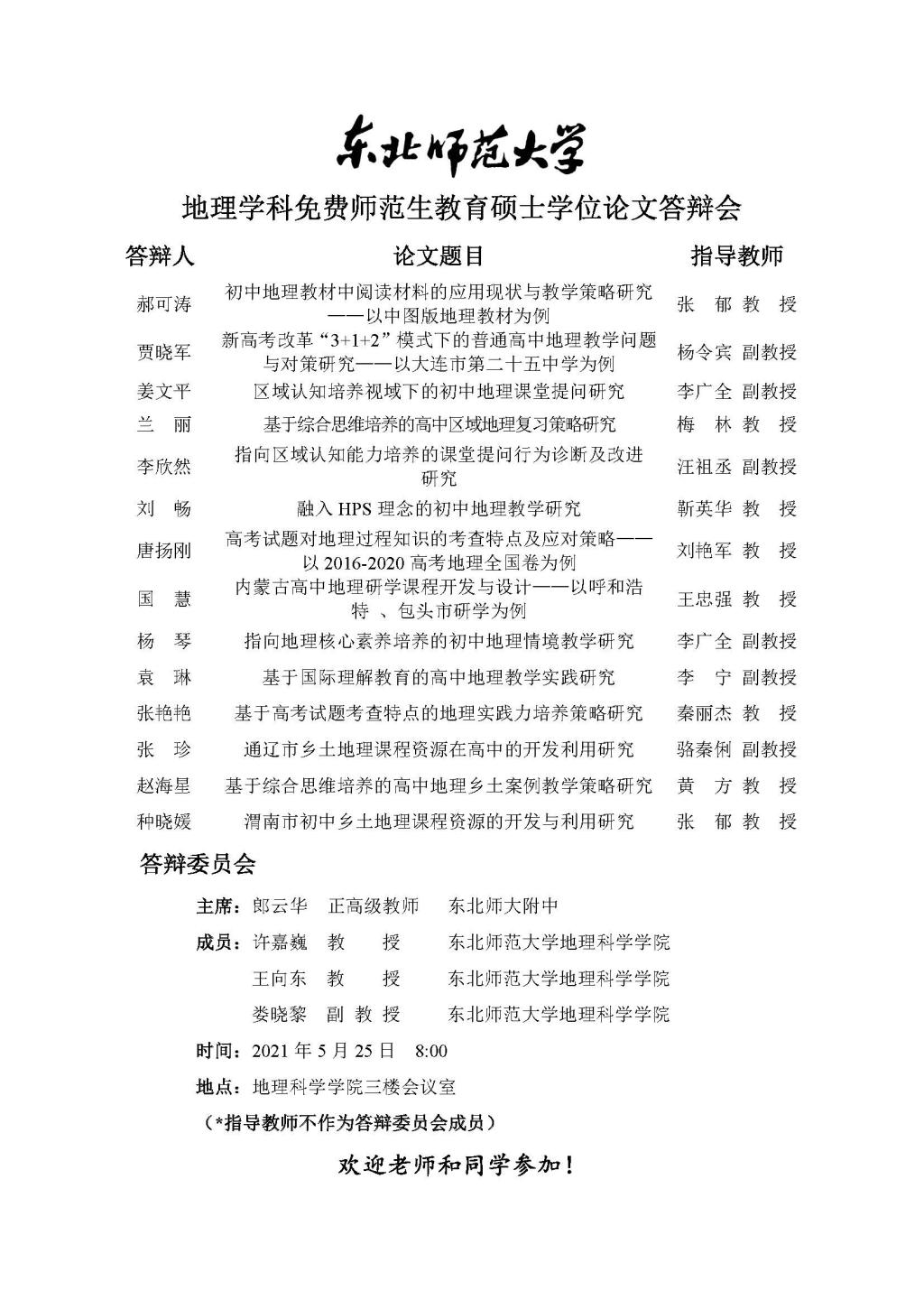 【硕博答辩】地理学科免费师范生教育硕士学位论文答辩