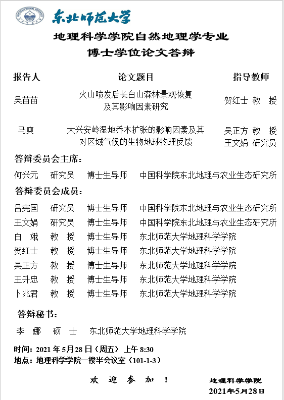 【硕博答辩】自然地理学专业博士学位论文答辩