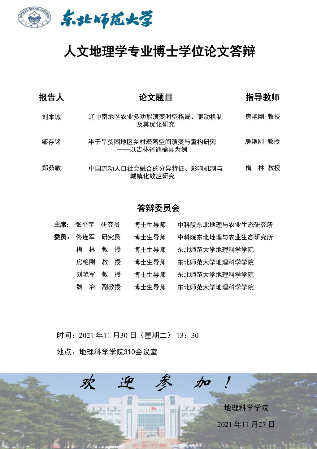 【硕博答辩】人文地理学专业博士学位论文答辩