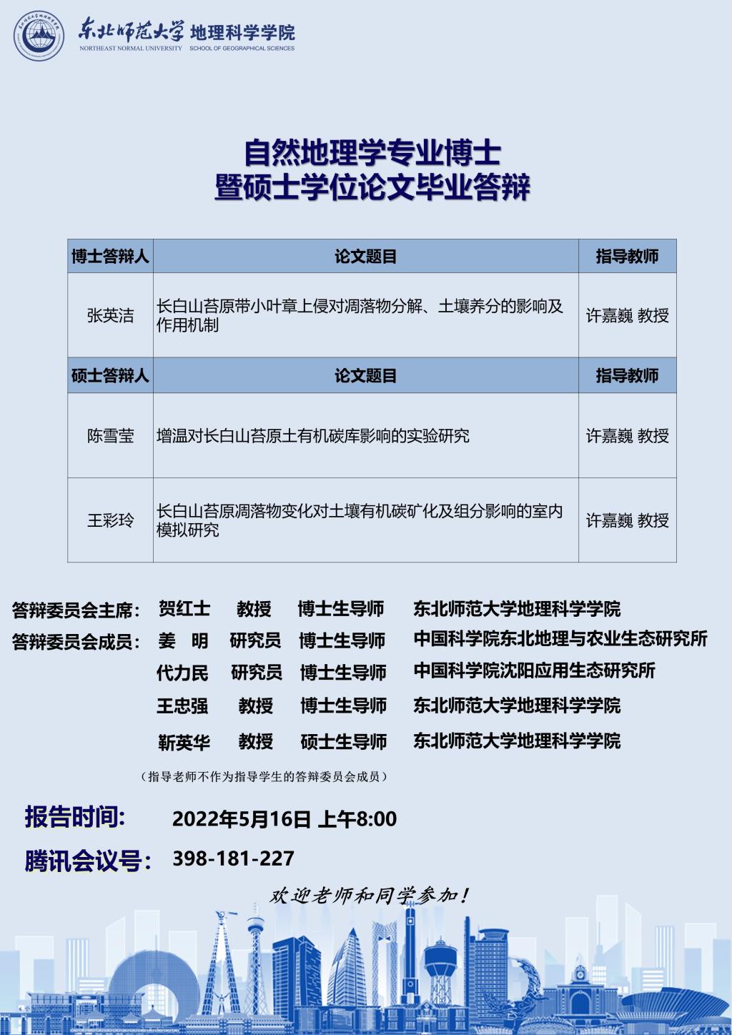【硕博答辩】自然地理学专业博士暨硕士学位论文毕业答辩