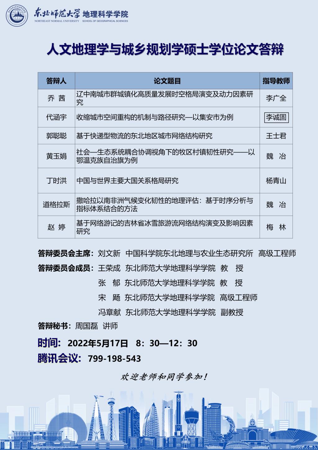 【硕博答辩】人文地理学与城乡规划学硕士学位论文答辩Ⅰ