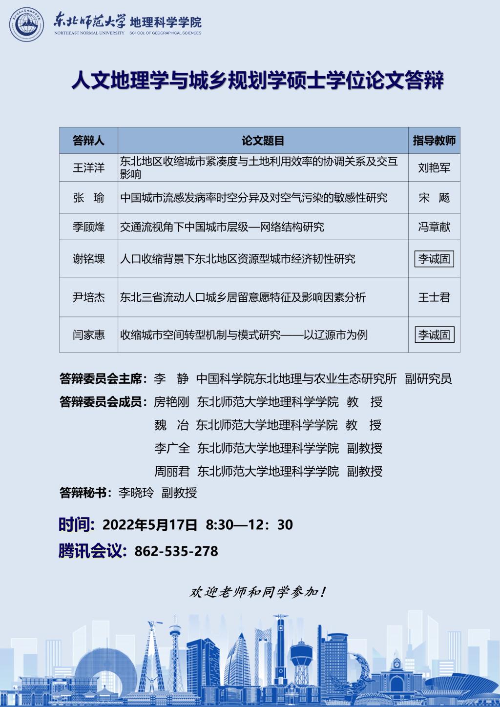 【硕博答辩】人文地理学与城乡规划学硕士学位论文答辩Ⅳ