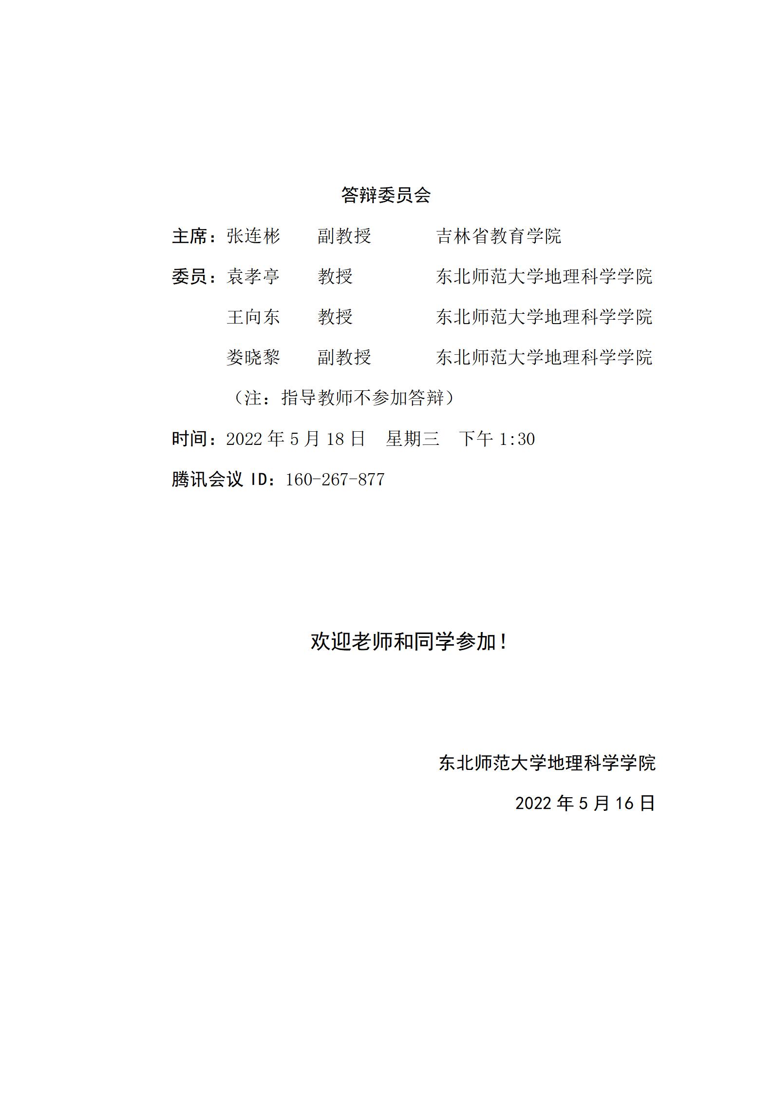 【硕博答辩】学科教学(地理)方向免师教育硕士学位论文答辩会